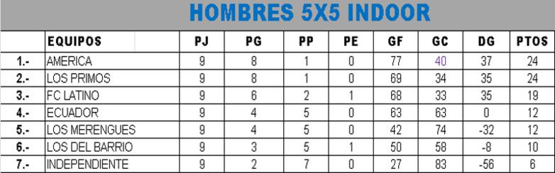 TABLA DE POSICION DE CAMPEONATO LDS